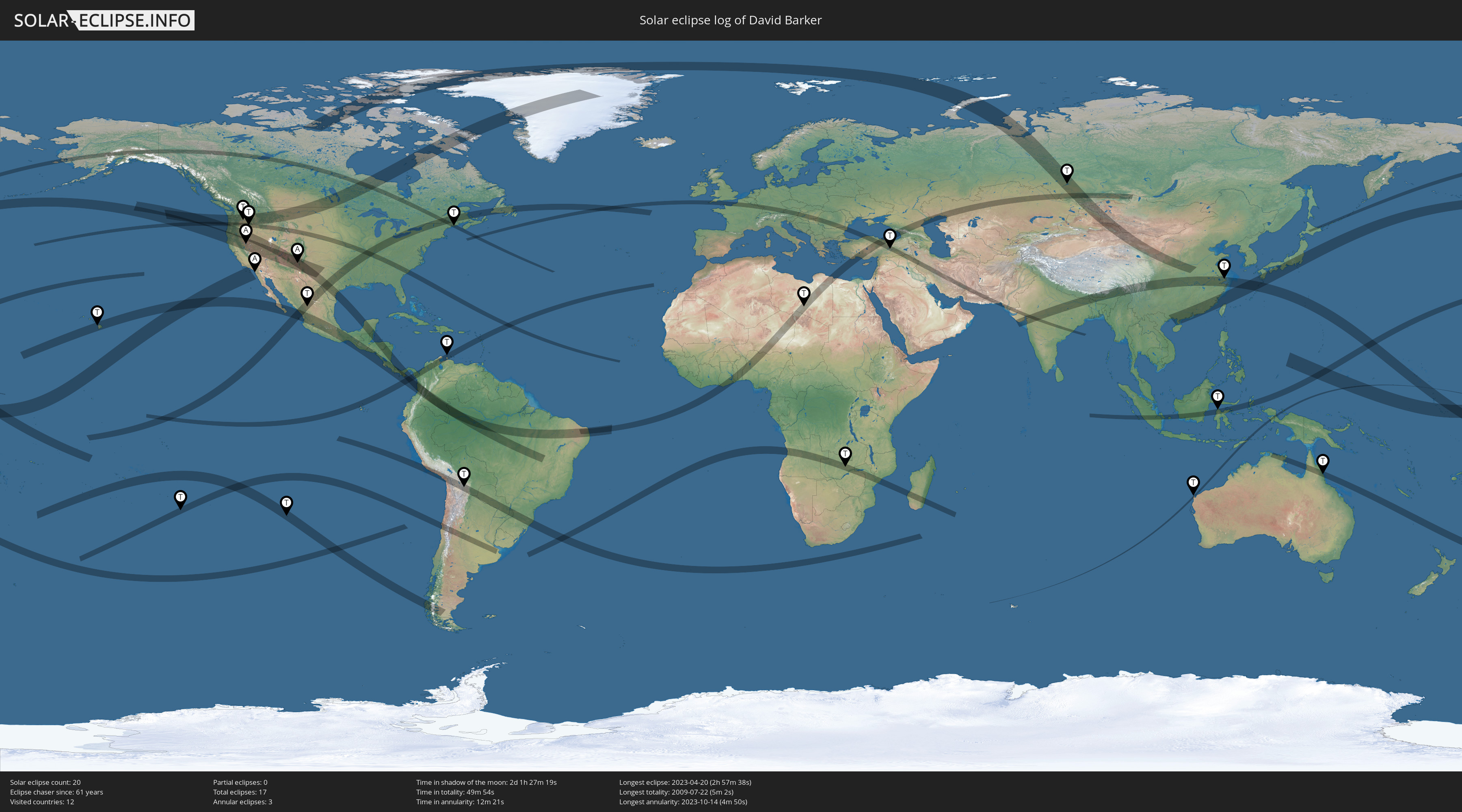 | 07/20/1963 (total) | total | United States 44.39°, -68.2° 14m | 100% | 2h 5m 30s | 59s |